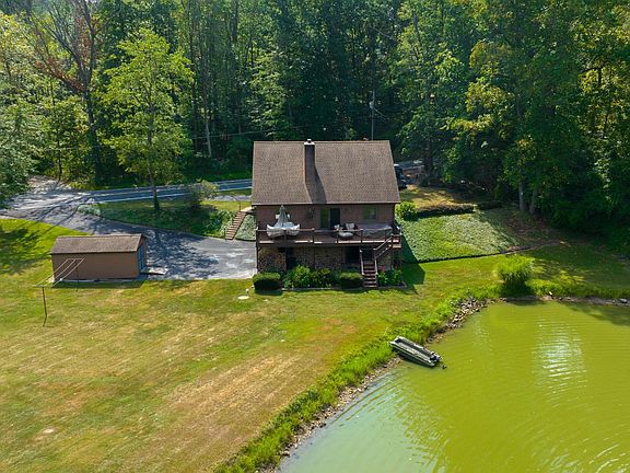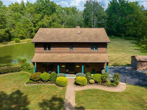Beautiful Country home on 3.68 acres in the Wilson School District. This home feels like a vacation home with it's large composite deck that looks over the pond and the trees. Relax on your covered front porch and enjoy the shade from the mature trees. This home was custom built by the builder for his daughter, so it is one of a kind and built very well. The great room boasts a floor to ceiling brick wood burning fireplace, as well as a vaulted ceiling with large windows and hardwood floors. The kitchen was recently updated to have ceramic tile floors and quartz countertops. There is a large first floor bedroom with closets and a recently remodeled tiled bathroom with a step-in shower located across the hall. The second floor has two additional bedrooms with plenty of closet space. There is another full bath on the second floor that was recently remodeled and includes a jetted tub. The basement is finished and walks out to the back yard. The deck looks out over the beautiful pond that displays various wildlife throughout the year. There are fish in this pond. There is also a stream at the rear of the property. The home is within only a few miles from Route 222, yet is so quiet, allowing one to enjoy both convenience and tranquility.
