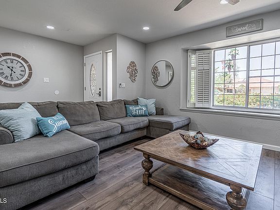 Over a quarter of an acre! Step outside to the backyard oasis, which features a large covered patio, lush landscaping, a sparkling pool, and plenty of space to relax and soak up the Arizona sunshine. With no HOA, you have the freedom to personalize the backyard to your liking.