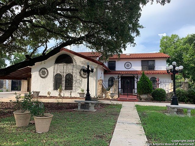 Price below Appraised Value! Traditional Spanish-Style Hacienda w/ circular driveway on corner lot. 6 bed/4 bath. Sparkling pool w/cathedral ceiling. Built-in BBQ/counters/sink. Mediterranean garden w/fruit, olives, palms. Downstairs mother-in-law suite/roll-in bath. New metal roof. Appliances included. Flagstone/stucco w/courtyard fountain, hardscape, concrete fence. Safety-step tub in master, handicap accessible. Library & Bonus room. Huge Florida room. Downstairs bath has custom tile/lighted faucet.