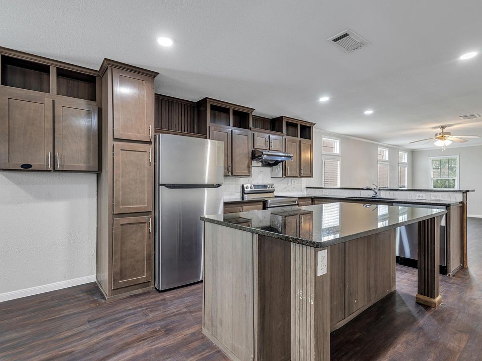 Fabulous mobile house on 1.5 acres ready for move in. Spacious living space with lots of natural light and 3 large bedrooms with 2 bath. The kitchen has granite counter tops, large center island and lots of cabinets throughout with a separate dining area. The large master bedroom is located in the back with dual sinks and huge tub. HUGE rear covered patio deck, perfect for grilling out. Come check this home out, FRESH PAINT throughout, ALL New flooring, clean and ready to move in! Applicant will use the TAR application. Tenant must have 650+ credit score, gross monthly income 3x rent. Text agent with any questions. Do not call. $350 non-refundable pet deposit. Minimum 1-year Lease.