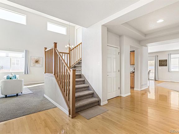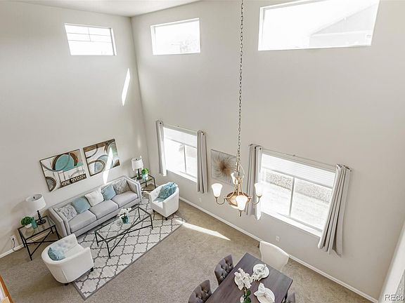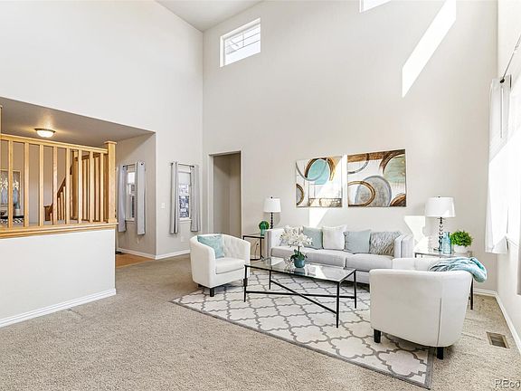 Discover the refined elegance of King Ranch Estates, a true architectural gem. This stunning property boasts a captivating exterior, immaculate landscaping, and grand interiors that include an 18-foot ceiling, a spacious 4-car garage, and two lavish living spaces. An unfinished basement awaits your personal touch. The kitchen, a marvel of culinary design, showcases sleek granite countertops and stainless steel appliances. Out of the five bedrooms, three offer private luxury with ensuite bathrooms. An upper-level bedroom provides a secluded retreat, complete with a balcony that offers panoramic views. Storage is plentiful throughout the home, with carefully designed solutions to maintain organized and uncluttered living spaces. You can also bask in the serenity of a private covered patio. King Ranch Estates is more than a neighborhood; it's a testament to the historical growth of Thornton. This community offers quality housing and falls within the top-rated Adams 12 Five Star School District. With easy access to major highways like Interstate 25 and E-470, commuting is a breeze. Experience a distinctive lifestyle at King Ranch Estates, equipped with a new water heater (2023). Welcome home.