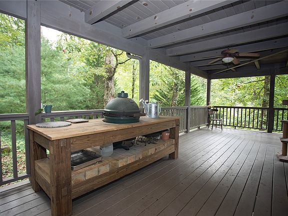 Welcome to 7530 Highway 11, This secluded 15 acres is located at the foot of Horse Gap mountain, in the foothills of the beautiful Blue Ridge Mountains. As you pass through the gated drive you will notice the apiary in the fenced pasture, with 1/8th acre of echinacea planted to produce fresh sourwood honey. On your right you will see a enclose pole barn complete with 200 Amp service and plenty of parking for trailers, boats or RV’s. Further up the drive nestled next to a stream is a 3-stall horse barn with pasture and covered areas for equipment. Plenty of room for horses, goats or chickens! Across from the barn is a ½ acre pond, filled with fish and turtles and a perfect place for the wildlife to refresh with the pond water and shade from the mature trees. Looking over the pond is this spectacular, warm and inviting home with a wrap around porch, with approximately 1890 square feet of outdoor living. This home was built with timbers that were milled on the property and all timbers in the living area are mortised and notched with every ceiling on the main floor being tongue and groove wood. Environmentally safe Homosate insulation keep the home energy efficient and helps to reduce the sound along with the walls being constructed using 2x6 lumber. The home is equipped with 2 Jodul wood stoves, this should keep you warm on the coldest of winters, however the home is also equipped with gas heat. For those of you that work from home or stream your services, there is fiber internet access with speeds available up to 1 gig in the house and shop. A new tankless water heater was installed in 2021, most appliances have updated since 2020, kitchen counter tops are non-porous silestone and lower cabinets have pull out drawers. Upstairs there are 2 large bedrooms with a full bath. Located on the lower level is the laundry room, washer and dryer to stay, and large living area or office. Outside on the lower level is a secluded area with hot tub overlooking the pond installed in 2020. The garage is an oversized 2 stall with plenty of room for storage, fully fenced kennel area in the back for dog houses. Home has had a new roof installed in 8/2023 and is ready for new owners!