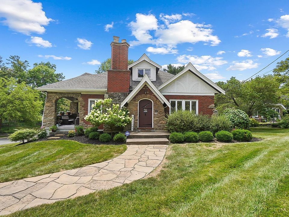 Classic and updated Tudor, with charming details such as arched doorways, leaded style glass windows, and hardwood floors. Large living room with a Rookwood tile gas fireplace and French doors that walk out onto your charming covered porch. Beautiful kitchen remodel offering Bosch appliances, granite counters, kitchen cabinet lighting, and a butler's pantry for extra storage. Two spacious bedrooms on the main level, while the primary utilizes the entire second floor with two closets and loads of natural sunlight. Fully finished bathroom on the lower level offering heated floors. Huge, professionally landscaped yard with a fire pit. Oversized garage with access off of Carroll. Updated electric. Restored leaded glass windows. This home is situated just between Pleasant Ridge and Kenwood Mall and just steps away from Highgrain Brewery and The Dipper. Easy highway access.