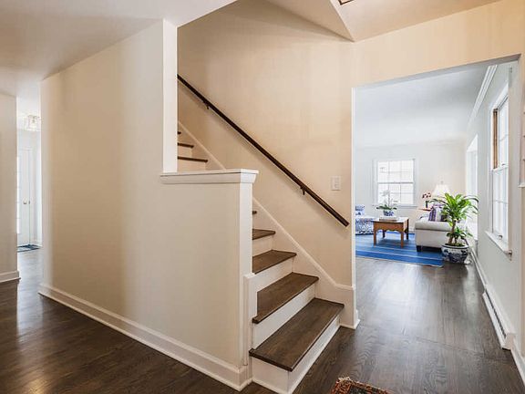 Super sunfilled adorable Cape Cod! Beautifully updated with open concept living. Kitchen boasts a great new island, stainless steel appliances and quartz counters. Gleaming hardwood floors throughout. 2 fresh full baths with subway tile and terrific vanities. 2 nice sized bedrooms on the 2nd floor, 3rd on main and 4th bedroom on main could function as a den or bedroom.Huge lower level perfect for future rec room. Conveniently located near Fox Point Pool, Longacre Ice Skating Pavilion, and schools. Great backyard patio, new concrete front walkway and driveway. Bonus attached 2 car garage. Move in and enjoy!Includes HMS Home Warranty