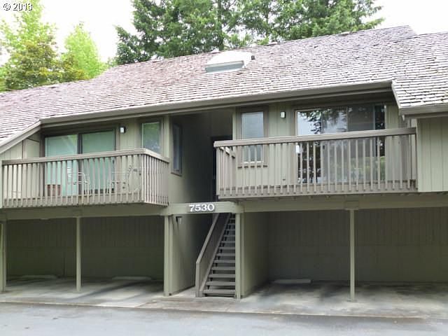 Light and bright condo with vaulted ceilings on the main level and master bedroom. New carpet through out. Modern kitchen with newer cabinets and counter tops. This unit is near the rec center and tennis courts in a very secluded (beautful gounds) area. Convenient for riding tri-met!
