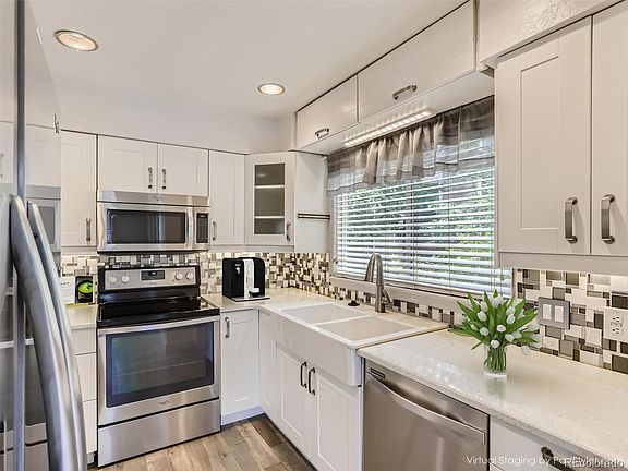 **SEE PRIVATE REMARKS FOR FINANCING OPTIONS** This beautiful end unit offers an updated interior with a bright, airy, open floorplan that sidles up to a private, spacious greenbelt. As soon as you walk in, you’ll appreciate the recently refinished hardwood floors on the main level, the brand new carpet downstairs and fabulous kitchen boasting white cabinets, stainless appliances and solid surface quartz countertops. A fresh coat of paint brings a crisp, finished feel to the recent renovations, giving the sense that this home has been fully prepped for its new owner. The primary bedroom offers an en-suite bath with a large walk-in shower and a newer vanity, while a secondary bedroom and a full bath finish off the amenities on the main floor. On the lower, you’ll find the laundry room (washer & dryer included!), a spacious family room with built-in gas fireplace and lots of natural light. In addition, you’ll find a dedicated entry from the garage that includes a coat closet, as well as a spacious half bath. Step outside onto your back deck to enjoy the serenity of the greenbelt to the west and enjoy both the quiet and the views. This is an exceptional unit in a prime location, only minutes from Clement Park, Southwest Plaza and highly rated Jefferson County public schools. You’ll not want to miss this one!