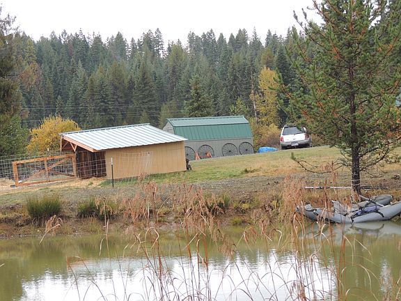 Northern Idaho Homestead with large spring fed year round pond on 10 acres. Acreage is fenced for horses & sheep. Horse barn has tack room and hay storage,plus 2 stalls. Sheep Barn with 2 pens & enclosed with welded wire panels. 12 x 24 Cedar storage building. 10 x 12 Guest house with heat & power. 12 x12 storage shed. 14 x 20 Conex Storage container. Natural landscaping with giant cedars,fir,aspens, cottonwoods,fruit trees. Easy access just 10 miles to town,off paved hwy 3. Lots elk and deer.