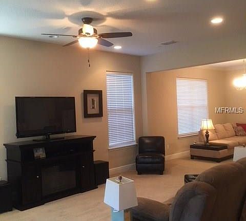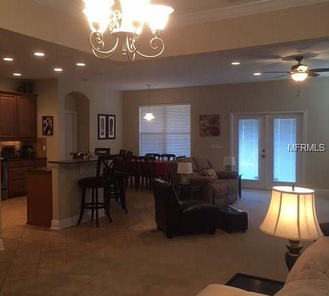 PRICE REDUCED FOR QUICK SALE !!!! This one story home has an additional bonus room on the second floor and shows like a model home.Built by Ashton Woods in 2008, this rare beauty has an open floor plan with loaded upgrades. No rear neighbors with additional vacant land easement at back of home that leads to a paved road exclusively for walking, biking, jogging, dog walks etc. Community features a pool with cabana and playground. Wired for surround sound in Family Room. Disney fireworks every night. Will not last...