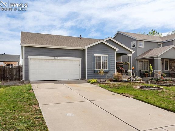 This 3-bedroom, 2-bathroom rancher is full of charm and thoughtful design, located in the vibrant Woodmen Hills community. With shopping, schools, and trail access just moments away, this home makes everyday living easy. Walk to the grocery store, bike to the nearby elementary, or explore the Rock Island Trail. As a resident, you’ll enjoy access to two community rec centers—featuring indoor and outdoor pools, a fitness center, group classes, kids' programs, and more. You're welcomed home by adorable curb appeal, with a tidy front yard and inviting exterior. Inside, enjoy true main level living, with everything conveniently on one floor—including a dedicated laundry room. A spacious living room greets you with vaulted ceilings and a wood accent wall, and durable laminate flooring flows throughout. Both bathrooms are finished with stylish tile. The front bedroom—with a walk-in closet—offers flexible space for a home office, guest room, or creative studio. The kitchen includes white cabinetry, a decorative tile backsplash, stainless steel appliances, custom lighting, and a walk-in pantry. The well-sized dining area walks out to the backyard, perfect for casual gatherings. The primary suite features a full bath and walk-in closet, while a third bedroom and another full bath provide comfortable living space. Step outside to a fully fenced backyard, ideal for pets, play, and outdoor entertaining. The concrete patio includes an impressive BBQ/kitchen station, and a large storage shed adds even more versatility. With a 2-car garage and access to an amenity-rich community, this Woodmen Hills gem is ready to welcome you home.