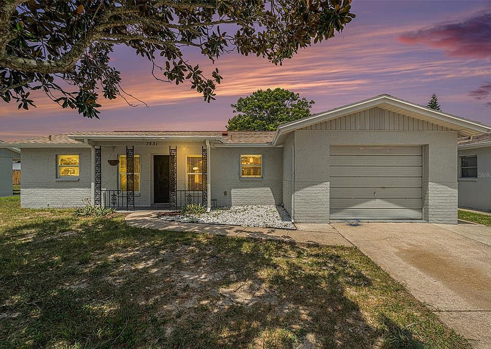 Welcome to your new home in Port Richey! This delightful 3-bedroom, 2-bathroom residence offers a blend of comfort and potential, making it a perfect choice for those seeking a cozy retreat with room to grow. As you approach, you'll be greeted by a welcoming front porch—ideal for relaxing with a morning coffee or unwinding in the evening. Step inside to find a spacious living and dining combo area, featuring laminate and tile flooring throughout. The open kitchen space is ready for your personal touch, offering the perfect backdrop for culinary creativity. The interior has been freshly repainted and fitted with new blinds, enhancing its move-in readiness and appeal. The primary bedroom boasts an ensuite bathroom and a generous walk-in closet. Convenience is key here, with a 1-car garage and an extra-wide driveway that can accommodate multiple cars, making hosting guests a breeze. Location is a standout feature of this property. You'll be just a short drive from the vibrant Tarpon Springs Sponge Docks, known for its eclectic mix of shops, restaurants, and waterfront charm. Additionally, you're close to scenic trails, beaches and local favorites like Sim's Park. With the Chasco Fiesta and other local festivals nearby, you'll always have something exciting to look forward to. Plus, Tampa International Airport is under an hour away, offering easy travel connections. This home offers not just a place to live but a lifestyle to enjoy. Don't miss the opportunity to make it your own and Schedule a showing today!