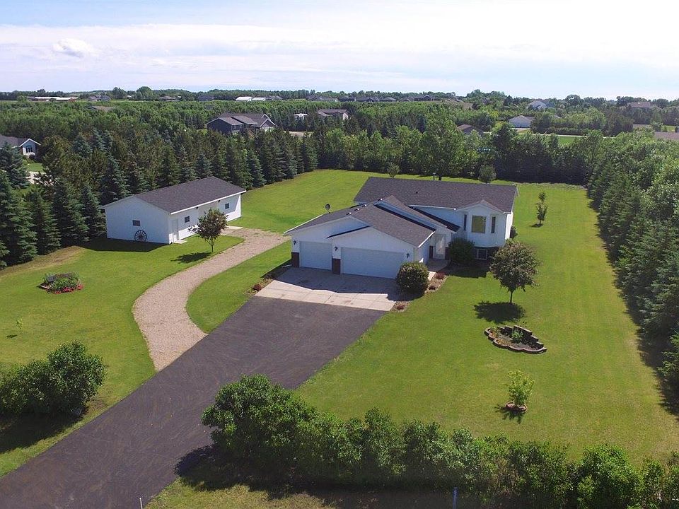 Enjoy rural living with the convenience of being close to the city! The main floor of this home is bright and open! The kitchen has a large island overlooking the living and dining room with a bay window looking to the west, and patio doors to the deck on the east over looking the beautiful lot surrounded by mature trees! There is a spacious master suite with a walk in closet and full bath. There is also another bedroom and full bath on this floor. The lower level has a cozy family room with a gas fireplace, laundry, 3/4 bath and 2 more bedrooms. The home has a 3 stall garage and a detached 24x 48 detached garage/shop! Move in and enjoy all this property has to offer!