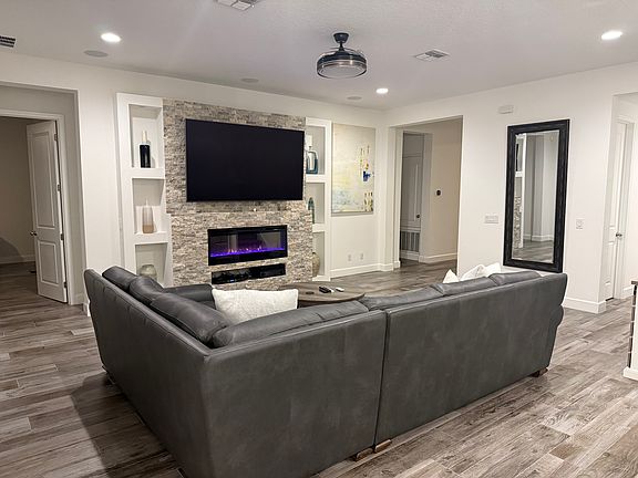 Spacious open floor plan with 3D textured wood tile and Extra padded brand new memory foam carpet. Over $50,000 in luxury upgrades including smart home controls for lights, window treatment, garage, thermostat, and built in speakers connected to Alexa or Google home. In ceiling speakers and subwoofers in Family Room, Game Room, and Master Bathroom.
