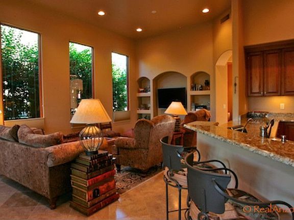 Gorgeous Tuscan Style Town Home in gated Rancho Sin Vacas. Classically styled Tuscan Town home in guard gated Rancho Sin Vacas. Superior finishes include travertine floors, granite counters, cherry stained cabinetry, lutron lighting & 8 foot alder doors. The owner very thoughfully customized this home with a dining area and office, perfectly placed windows that were added for the views, custom designer blinds and 2 private patios. The home has been well taken care of and lightly use...