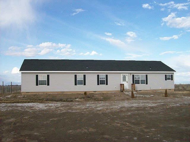 Nice 4 bedroom, 3 full bath modular home on 39 acres near town. Large kitchen, family room and office makes this home a special buy. Land has Rock Creek running through the north part of property. Nice deck on back of home has a great view of Mt. Blanca. Great for summer evening barbecue. SOLD AS IS!