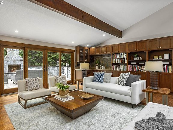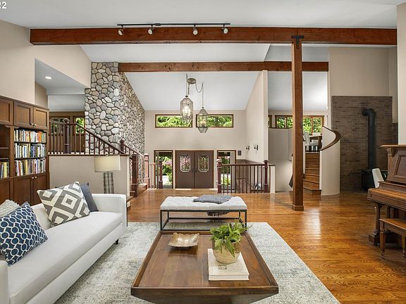 Rare opportunity! close in acreage leads to a gated entrance private forest estate. Completely updated inside and out with Newer roof, windows, and appliances. Gorgeous arts and crafts style wood trim, cherry cabinets in kitchen & library. Sauna room, hot tub & jetted tub in the master bath. South part of undeveloped land could be used for a pool, sports court, or ADU? Plenty of parking for a boat/RV. Minutes to Happy Valley Park, New Seasons. Must see!