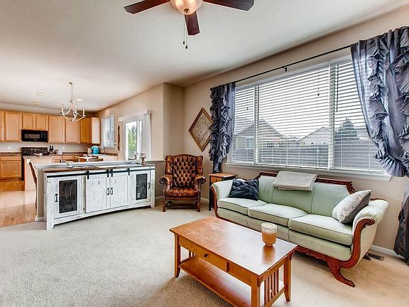Charming, turn-key home in popular Villages at Riverdale. You'll love the bright, open floor plan of this popular model. The kitchen offers gleaming hardwood flooring, a pantry and a handy island; and opens to the spacious family room! A beautiful living room, dining area, convenient main floor study, laundry room & 1/2 bath complete the main level of this impressive home. Upstairs, the generous master bedroom comes complete with a private 5-piece bath and large walk-in closet. 3 additional bedrooms and a full bath complete the 2nd level of the home. Finish the basement with your personal touch! Enjoy the peacefulness of the covered front porch, or relax on the back patio and watch the kids play in the fenced yard! Perfect home for the growing family! Conveniently located! Across the street from park, open space, pond & walking trails. This one won't last! Turn-Key-Ready to move in!