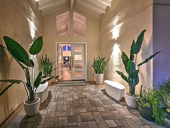Modern luxury in the heart of Scottsdale. Perfectly situated on a South facing lot and completely renovated in 2016. This home has a warm and inviting feel with extraordinary finishes including: 16 foot cathedral beamed ceilings, white oak natural wood flooring, gourmet kitchen with white shaker cabinetry and Cambria® quartz countertops and Thermador® appliances. Baths appointed with modern floating cabinetry, spacious master with sitting area, designer Kelly Wearstler lighting fixtures throughout. Outside enjoy a stunning entry courtyard with covered entry. In the back yard is a covered patio, Ultra-Poz® sparkling pool with Baja shelf, travertine decking & BBQ island all highlighted by nightscap lighting. Solar Paanels (28) on the roof. This lovely enclave of 43 homes in centrally located with quick access to restaurants, gyms, shopping and the US101. All potential buyers to be pre-qualified prior to viewing home. Disclosure: This property is on leased land with 64 years remaining on term. The land lease payment is equal to 1/10 of 1% of the transfer price monthly. Seller is a licensed real estate agent in the states of Arizona and California.