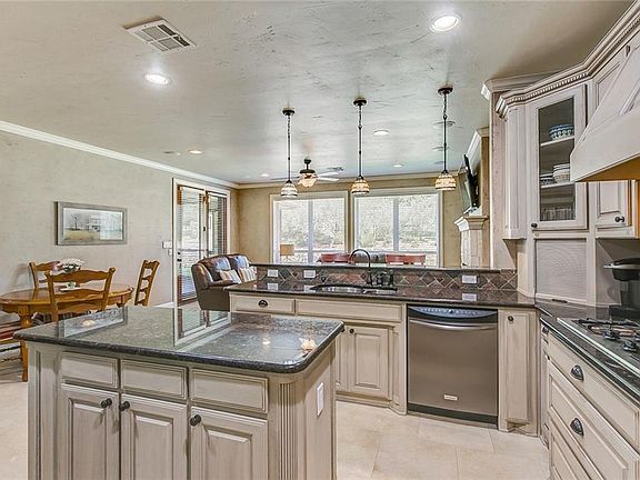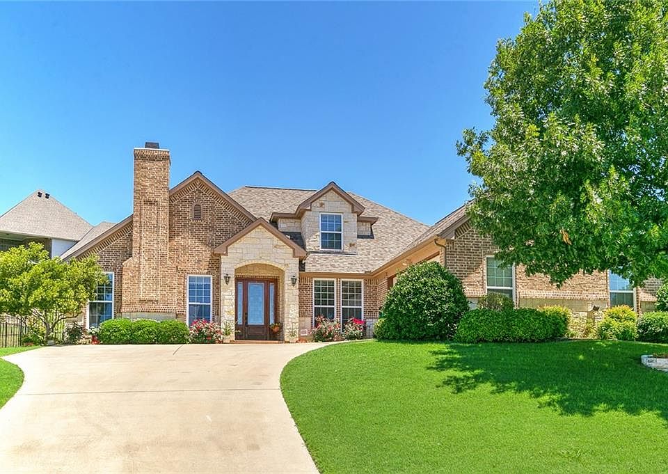 Meticulously maintained custom home with views of Eagle Mountain Lake. Brazilian Wood Floors, Venetian Plaster and Crown Molding. Gourmet kitchen with island, double ovens, gas stove and wine rack. Master bedroom is downstairs with beautiful master bath which includes double shower, jetted tub and separate vanities. Second bedroom downstairs with adjacent bathroom could be used as second master. Two bedrooms upstairs with a full bath and decked attic space for your storage needs. Two living areas downstairs each have a fireplace. Downstairs also has two dining areas, study and laundry room. Sun room has cedar walls and eight windows and makes for the perfect entertaining spot. Motivated Seller!