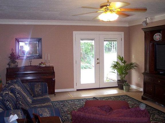 Beautifully redone home! All new thermo pane windows. Great room and formal dining room. Updated kitchen with new counter tops/back splash, tiled floor, electric stove, refrigerator, disposal, and dishwasher. Laundry room. Both baths have been remodeled with new fixtures, sinks and tiled flooring. Carpad. Central heat (gas) and central air. Covered patio. Sprinkler system in front yard. 16'X20 workshop with loft area, electricity and roll up door. Pest Control and security system. Rear fencing.