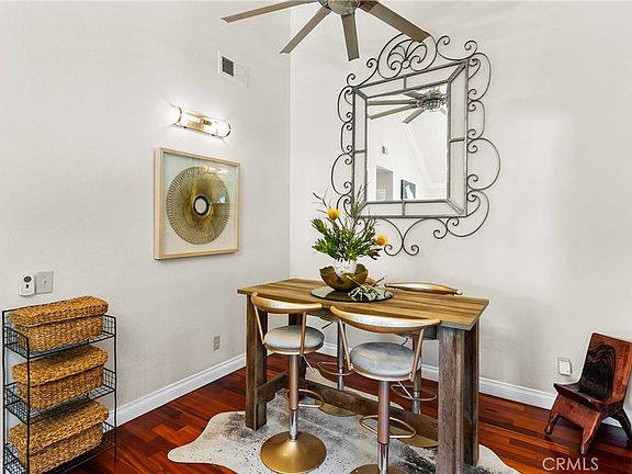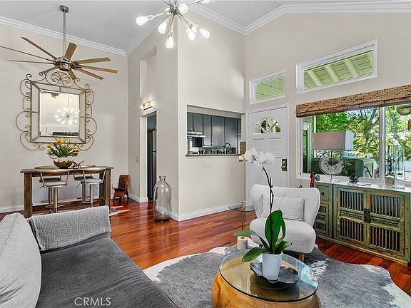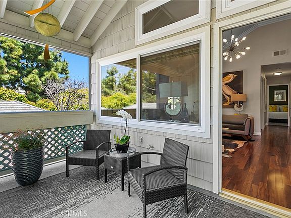 The BEST carriage home location in all of Pacific Ranch! The Swiss Family would have chosen this end unit with adjacent greenbelt and "Tree House" balcony for sure! The architect put all of the right spaces in all of the right places in this EZ living layout…and then added wonderful details that are enjoyed from every angle. The designer added more beautiful details from floor to ceiling that make this a must-see home! The private entrance balcony is the perfect spot for morning coffee, after-work cocktails, or weekend naps and sets the stage for single-level living at its best. The open living space is great for quiet evenings by the fireplace or entertaining friends and family in the flexible dining room. Decorator details abound in the customized kitchen with plenty of cabinet and prep space, stone counters, stainless accents, and a convenient slider to the balcony for alfresco dining. The primary bedroom is large enough for a king-size bed and more…plus has a huge wardrobe closet and vanity/dressing area with loads of storage. The additional bedroom works well for guests, home office, or den…and is convenient to gorgeous “spa” bath with vessel sink and deep soaking tub. So many nice features here…including hardwood flooring, custom fixtures, dual pane windows, inside laundry and more. The enclosed garage is conveniently located below the unit with access door at the stair entrance, plus the reserved carport space is just steps away. This location can not be beat with plenty of guest parking nearby, lots of open space and gorgeous mature trees all around…PLUS is oh so close to several exit/entrance gates. Pacific Ranch is the premiere downtown HB community with gorgeous amenities and a fantastic location just minutes from Pacific City, Seacliff Center, Main Street restaurants, Huntington City Beach and the Pier. We told you…this is a must-see home!
