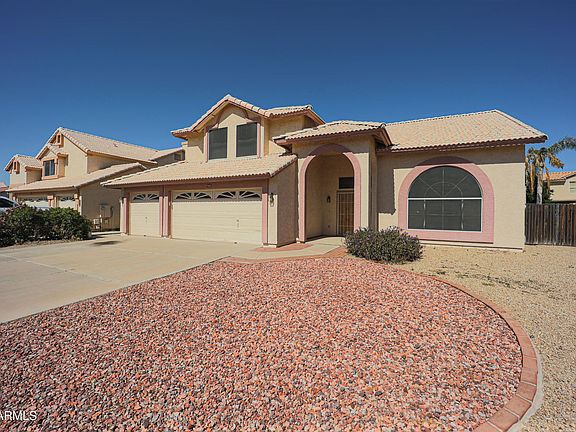 Highly sought-after Peoria location. Walk into this beautiful vaulted open floorplan with wood burning fireplace and Primary Bedroom downstairs with separate exit to the backyard, three bedrooms upstairs allowing private space for everyone. Spacious kitchen with kitchen island, breakfast bar & eat-in kitchen. Secluded yard with pool, RV gate and RV parking for all your toys. North/South exposure with no HOA. This 3 car garage home is priced to sell. Walking distance to Paseo Verde Elementary (K-8) & Centennial High School. Minutes from the 101, Arrowhead Towne Center, P83 shopping, fine dining, entertainment and Seattle Mariner and San Diego Padres Spring Training. The only thing this home is missing is you!