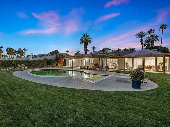 Modern luxury meets outstanding location and value in this fully renovated Mid-Century architectural design, set on the prominent south side of Hwy 111 in Indian Wells' desirable Rancho Palmeras neighborhood and boasting extraordinary southern views of Mount Eisenhower. Initially built in 1965, this elegant desert modernism home is open and spacious, showcasing chic finishes and premium upgrades throughout - custom White Oak cabinetry, concrete-look porcelain flooring by CITIZENS, a chef's kitchen outfitted with Bertazzoni appliances, a Primary Suite with oversized Primary bath. If desired, there's plenty of space to configure a second Primary Suite perpendicular to the family room: two en-suites, one en-suite bath, and a sleek fireplace.Relax in the tranquil, Zen-like backyard with fresh new landscaping and an effortless indoor-outdoor living concept. Lounge by the custom fish-shaped pool and enjoy the covered patio with misters and a park-like setting. Room to Add a Casita--the large backyard offers space for a detached casita or guest house. This is a rare and valuable opportunity to create a private retreat for visitors, accommodate multigenerational living, or enjoy additional living space, enhancing lifestyle flexibility and long-term value.As an Indian Wells resident, you'll enjoy exceptional perks: complimentary gym access at the Grand Hyatt Regency Indian Wells Resort & Spa, special privileges at the Indian Wells Tennis Garden, and 20% discounts on dining and golf at all four nearby 5-star resorts. You're just minutes from El Paseo and ''The Village'' for upscale shopping and dining. This Mid-Century Modern retreat is a must-see for discerning buyers. Offered at $1,395,000, this rare find won't last long - take advantage of the opportunity to live the ultimate Indian Wells lifestyle!