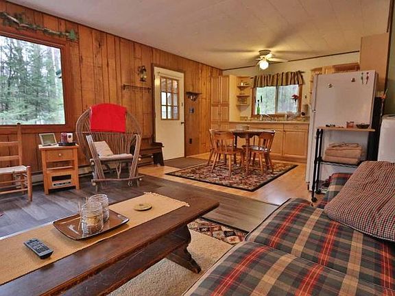 Two bedroom cutie close to Lake Tomahawk. Gas free-standing fireplace and a bright living room and kitchen with light maple cabinetry. 3-season porch as well as a spacious, partially sheltered deck. Two storage sheds and an attached lean-to. Just minutes to Indian Mounds boat landing and the snowmobile trails. State forest land nearby. This one is ready for four seasons of fun! Furnishings negotiable.