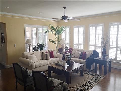 One Story Patio Home with Large Rooms! A Rarity. Stunning CUSTOM, ONE-STORY patio home. 3 Bedroom home with a Study. Hardwood floors throughout the main living areas. Crown moldings in all rooms, along with custom wood plantation shutters for every window. Large entry way has a custom stamped concrete floor. Custom leaded windows surround the front door. The Kitchen features granite counter tops, as well as a gas burner cook stove.