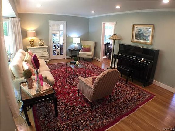 Come home to this lovely updated and upgraded tri-level with 3 bedrooms and 2 1/2 high end renovated baths, 2 charming fireplaces, gleaming hardwood floors on first and second level, remodeled kitchen with newer appliances, new insulation, Replacement PELLA windows, GEOTHERMAL HEATING AND COOLING SYSTEM installed in 2012 that saves a bundle on utility costs, even provides your hot water! New laminate floor and built in in Family rm, Screened porch overlooks property, rear is fenced with lovely lawn, gardens and deck. Two sheds with electricity and water, Security system, short distance to Southampton Recreation Association, James River/Pony Pasture, shopping, dining and highways.