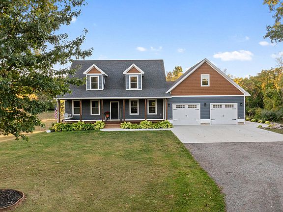 Welcome to this stunning custom-built home in the highly sought-after Hanover-Horton School District! Built in 2018 with and nestled on nearly 9 private and secluded acres, this property offers the perfect balance of modern comfort and peaceful country living—all just minutes from US-127 and Jackson College for ultimate convenience. Step inside to an open floor plan filled with natural light and gorgeous views throughout. The farmhouse-style kitchen steals the show with its oversized island, warm finishes, antique door accents, and a functional mudroom complete with a built-in dog station. The main-floor primary ensuite is a true retreat, featuring a large tiled shower, clawfoot tub, and serene views of the surrounding landscape. Upstairs, a cozy landing leads to two spacious bedrooms, each with its own private nook—ideal for reading, play, or study. With 2.5 baths, an oversized 2-car attached garage, and a large deck with a covered section and ceiling fan, the home is perfectly desig ned for both everyday living and entertaining. The walkout basement boasts soaring 9-foot ceilings, large windows, and double doors, ready to be finished into additional living space, a custom workshop, or the ultimate recreation area. A rare lifestyle property in an unbeatable location, this one truly has it all.