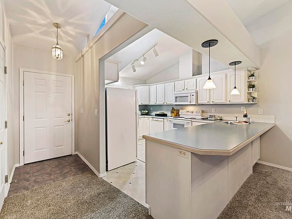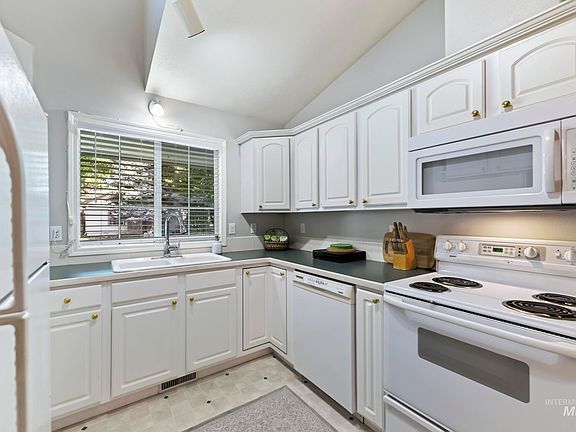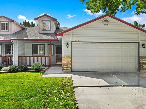 Beautiful townhouse, great location and minutes away from many of Boise’s great amenities. Wonderful custom stain-glass window above the fireplace, backdoor leading out to a covered patio, spacious open concept with vaulted ceilings and a primary bedroom featuring walk in closet and full bathroom. HOA includes front landscaping and exterior painting! Beautiful, roomy clubhouse and common area right across the street.