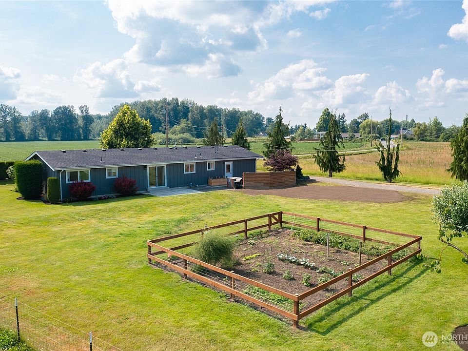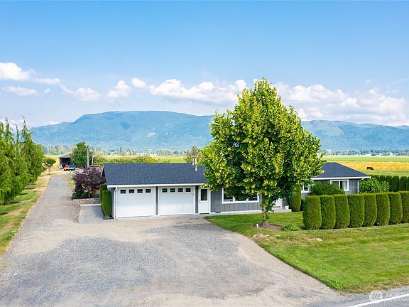 Discover Your Dream Hobby Farm! Nestled on 5+ acres of flat, level land, this fully remodeled 3-bed, 1.5-bath, 1222 sq ft home offers the perfect blend of modern luxury and rural charm. Enjoy an open floor plan, newer appliances, custom cabinets, and stunning quartz countertops. Completely replumbed, rewired, and reinsulated with a new roof in 2022, this home is move-in ready! Bring your horses or cattle—this property is ideal for livestock, complete with an outbuilding for storage. Savor peaceful living with breathtaking mountain views, all just a short walk to Everson and 15 minutes from Lynden.