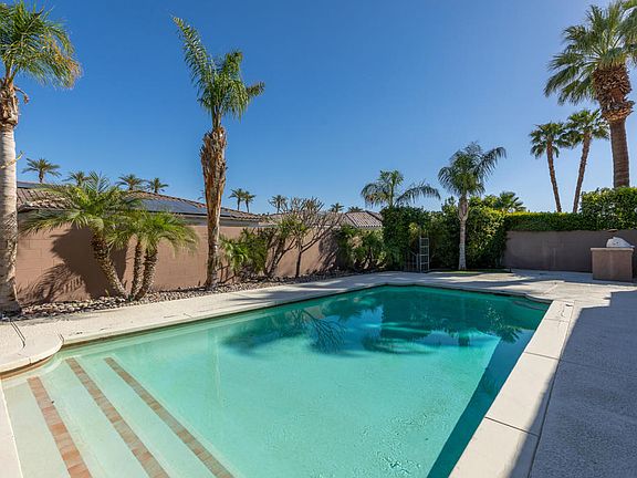 Welcome to the heart of Indian Wells with this spacious 3 bed & 3 bath single-family home, nestled in the highly desirable neighborhood of Rancho Palmeras Estates. As you enter the home through the front gate you are welcomed with large patio areas and lush landscaping. The entry leads you into the large great room with travertine fireplace surround, wet bar, vaulted ceilings, and sliding doors that lead out to the beautiful backyard oasis. The large, tranquil, private yard is beautifully landscaped offering the ideal space to lounge by the pool and take in the mountain views and enjoy the amazing desert weather. The large kitchen offers a breakfast area or small dining space with sliding doors that lead you out to the outdoor kitchen area. Three large bedrooms, all are en-suite, are spacious and have ample closet space. One of the two guest suites is currently being used as a den. Additionally, the home offers a expansive two-car garage with lots of room for storage and dual zone HVAC. As a resident of the City of Indian Wells, you'll enjoy exclusive benefits or the Residential Benefit Program that includes exclusive discounts at the Indian Wells Golf Resort, the prestigious BNP Paribas Open, and all four Indian Wells resort properties. Start enjoying your desert lifestyle!