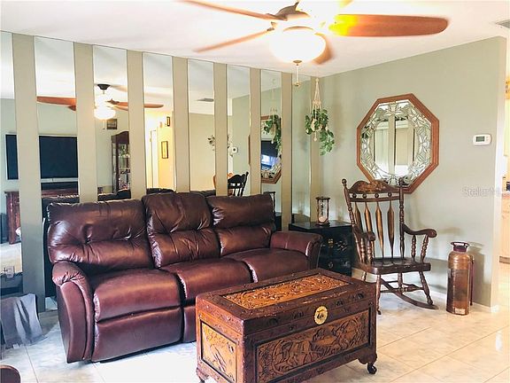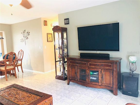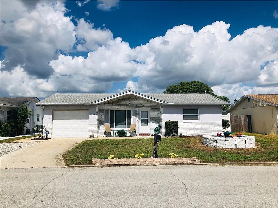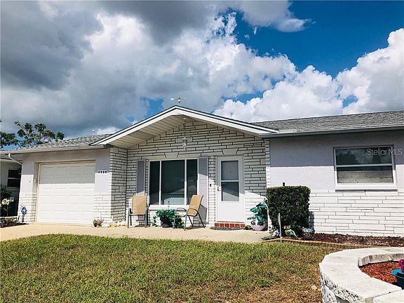 WELCOME HOME to this TURN KEY 2 bedroom / 1 bath home in Port Richey! Close to schools, US19, SunWest Park and the Vets Expressway, everything you need is a hop, skip and a jump away! Newer tile has been installed throughout the home for easy flow. The Galley Kitchen's window overlooks the enclosed back porch and huge PVC fenced-in backyard that is spacious enough for a pool! Now it houses a pristine shed equipped with electric for any home projects /hobbies you are willing to tackle! Bedroom 2 has been set up as a Theater Room with a large TV mounted on the wall, but can easily be converted back to a bedroom! The bathroom and master bedroom have been tastefully updated. New Ceiling fans complete the look! Washer and Dryer are housed in the roomy garage which is big enough for a car and normal storage! All this house needs is a family to call her HOME!