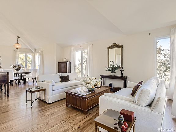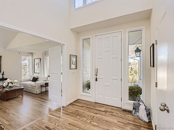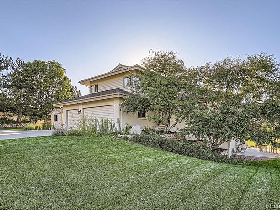 Welcome to Castle Pines! This spectacular 5 bedroom, 4 bath home, with 4,800 finished square feet, is situated within the intimate enclave of Claremont Estates—a beautiful community featuring spacious homesites. This unique property occupies 0.85 acres, ensuring nearly complete privacy from neighbors. The extensive landscaping, encompassing natural grasses, a lush lawn, and fully irrigated garden beds, frames stunning views! The interior, showcasing brand new real wood floors, has undergone a loving renovation with high-end finishes. The main floor has fresh interior paint, along with high ceilings in nearly every room, and an abundance of windows creates bright and airy spaces. The new custom kitchen boasts top-of-the-line appliances, including a Wolf gas range, GE Cafe French-door wall oven, a built-in Miele refrigerator, and ample storage space. The open concept family room features a cozy fireplace and a patio door leading to the extensive deck with a pergola. The rare, main-floor primary suite highlights a brand new spa-like bathroom, new carpet and convenient deck access. Upstairs, three additional bedrooms, a remodeled bathroom, and a small library area await. The finished basement is equipped with a vintage wet bar and ample space for entertaining family and friends. Additionally, there's a mother-in-law suite with a renovated bathroom, a kitchenette with newer stainless steel appliances, and a private outdoor patio. Additional features include newer air conditioning and a stone coated metal shingles. There is a three-car garage plus space in the driveway for your personal pickleball court. Conveniently located, miles of walking and biking trails are right outside your front door, three minutes from I-25, 11 minutes to the Park Meadows Shopping District and restaurants, and 18 minutes to the Denver Tech Center (DTC). Visit our 3D virtual tour, 7535Yorkshire.com.