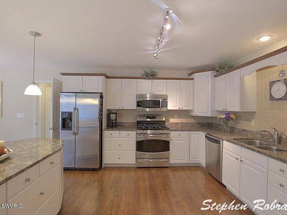 Absolutely stunning best describes this impeccably maintained Former Parade sprawling 1 1/2 story walkout in Rockford. Situated on 1.63 acres this home defines pride of ownership. This 5 BR, plus HUGE bonus room, 4 1/2 BA offers something for everyone on each level. The main floor features flawless hardwood floors, gracious dining room, large living room with fireplace, spectacular white kitchen with granite counters and island, Stainless appliances, eating area, laundry room, 1/2 bath, master BR with walk in closet, 2 other BR's with corian counter tops, full BA with 6' tub, and composite deck. The upper level features 500 sq. ft. that can be used as a BR, bonus room, play room, or office plus it has a large full bath with tub. The LL truly has it all. Family room with built in desk,