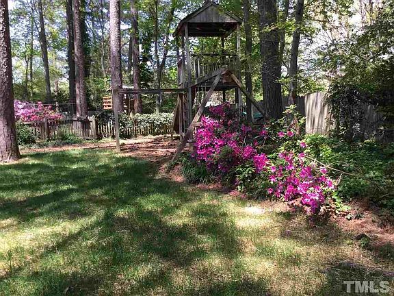 Easy access to I-540 & 440! Owner of this home has taken excellent care of this property. Home is situated on cul-de-sac lot. Large family room with wood burning fireplace. Nice size kitchen with plenty of cabinet and counter space open to breakfast area. All bedrooms are generous in size plus a finished bonus room that could be fourth bedroom if needed. Third floor walk up attic great for storage or future expansion. Nicely landscaped, over sized deck and one car garage! Fireplace plumbed for gas logs!
