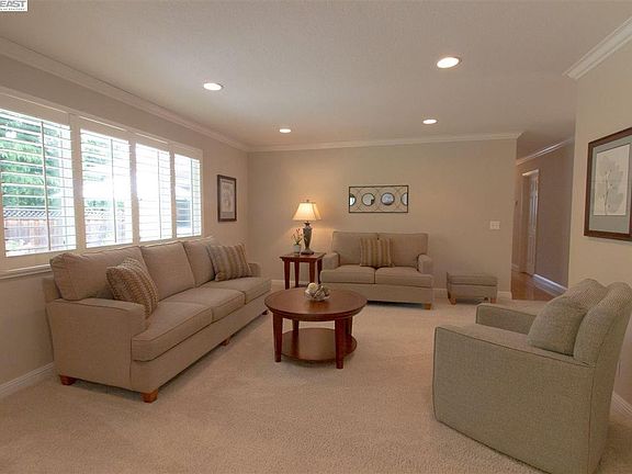 Beautifully cared for home on a lot backing to a creek provides for great privacy. This home has been updated with recessed lighting, remodeled baths, new sod front & back, molding, blinds, dual pane windows and paneled doors thruout. Three bedrooms have hardwood floors as does the halllway. The kitchen has been updated and is open to a large dining area. The family room features a gas fireplace. This home has fruit trees, beautiful planting areas, patios and porches to enjoy the surroundings. Convenient commute to 680 and 580. Top rated San Ramon Valley Schools.Open Sat and Sunday from 1-4.