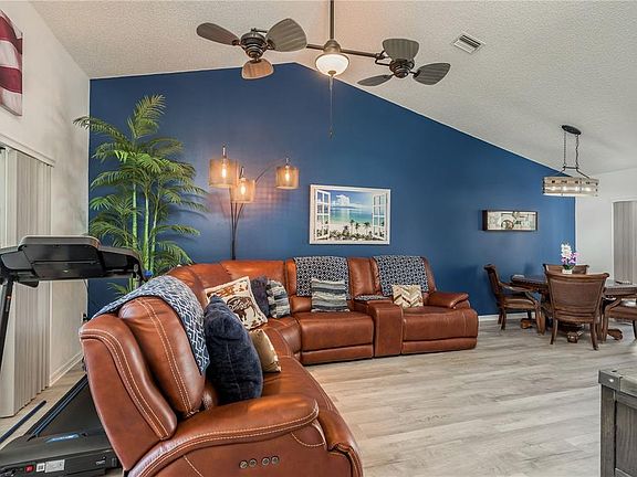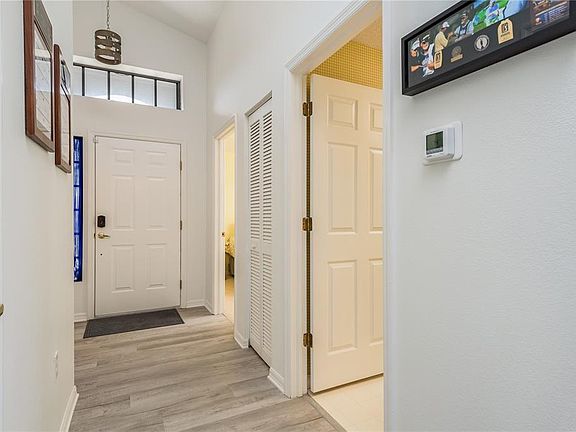 Don’t miss this rare chance to assume the seller’s incredibly low 3.125% mortgage on a beautifully updated 2-bedroom, 2-bath end-unit villa with a 1-car garage! The moment you walk in, you’ll feel right at home. New vinyl plank flooring carries throughout the foyer, living room, kitchen, and screened porch, perfectly complementing the freshly painted interior. The exterior has also been recently painted by the HOA—nothing left to do but move in! Soaring ceilings create an open, airy feel, and you’ll love having two inviting outdoor spaces—a sunny hammock area for relaxing and a versatile screened porch ideal for entertaining. The fully renovated kitchen is a showstopper, featuring white shaker cabinetry, quartz countertops, a chic tiled backsplash with custom under-cabinet lighting, stainless steel appliances (including a double oven!), a walk-in pantry, and a roomy dining area. A conveniently located large laundry closet sits nearby. The spacious primary suite includes plush high-end carpet, a generous walk-in closet, and an updated en-suite bath with all-new fixtures. The guest bedroom is equally comfortable, offering a large closet and easy access to the second updated bathroom. Even the garage has been thoughtfully improved—complete with an epoxy floor, automatic door opener, and space for an extra refrigerator (included!). Additional upgrades include new lighting, ceiling fans, a recently installed A/C system, 6 Blink security cameras, 5 motion spotlights, window and door alarms, and attractive walkway lighting that beautifully highlights the home after dark. Plus, the low monthly HOA fee makes this villa even more affordable while still offering beautifully maintained grounds and exterior maintenance. Ideally located close to top-rated schools, medical facilities, great dining and shopping, airports, golf courses, and world-famous beaches, this villa truly checks every box. If you’ve been searching for the perfect villa, your search ends here. Schedule your showing today!