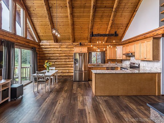 Wonderful log home and shop on 34+ acres with creek. Great room with wall of windows looking over the pasture and trees. Lofted master with separate balcony. Large bedrooms and updated main level bath. Enjoy evenings by the firepit and wildlife on your own piece of country. Out of town yet close in for quick access to shopping. Shop includes office/bonus space for multiple uses. Property currently hayed but could be great for animals.