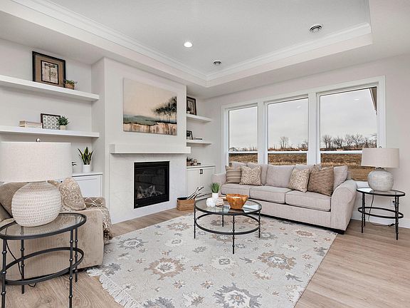 Madison Floor Plan. One-level living that you will want to see. Association for lawn and snow services only. Builder standard features include engineered wood siding, custom cabinets w/soft close doors and drawers, site-finished trim and doors, tile floors in all bathrooms, Pella 250 series windows, and so much more. The development has 30 Slab-on-grade lots. Upgrades include a Pan Vault ceiling, bookcase, Quartz counters, large patio 12x26,