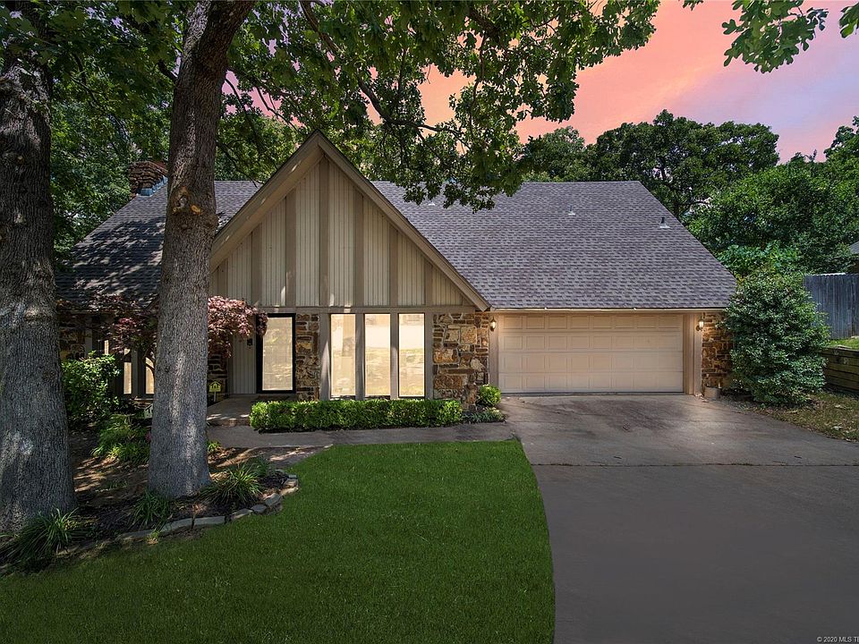 Must see modern home on cul-de-sac with large living area featuring tall beamed ceilings and a grand extending fireplace. Large windows boast of natural light throughout home. Gourmet kitchen with granite counter tops and backsplash, gas stove and stainless steel appliances. Office or hobby room with separate entrance. Jenks School District. Seller Just replaced the Downstairs AC unit.