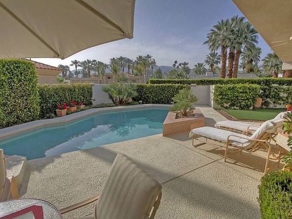 This beautiful custom built home has everything you can want in Indian Wells including a southern mountain view. This 3 bedroom and 3 bath home also includes a bonus room attached to the master. The open floor plan flows from the great room to the kitchen to the beautiful patio and includes large windows providing the views of palm trees and mountains. Once on the patio, enjoy the pool and spa, or the outdoor dining room with TV, or play a few holes on the putting green. The home has been built on the lot specifically to take full advantage of the beautiful southern views. There is a 3 car garage, one with an oversized garage door to allow for a larger car or over sized toys. The master suite has 3 closets that are custom built, a marble fireplace, and you will wake up to scenic views every day. As an IW resident, you have privileges at the famous Indian Wells Tennis Garden and enjoy 20% off on all Indian Wells 5-star resorts, dining, and golf with your Indian Wells residence card.