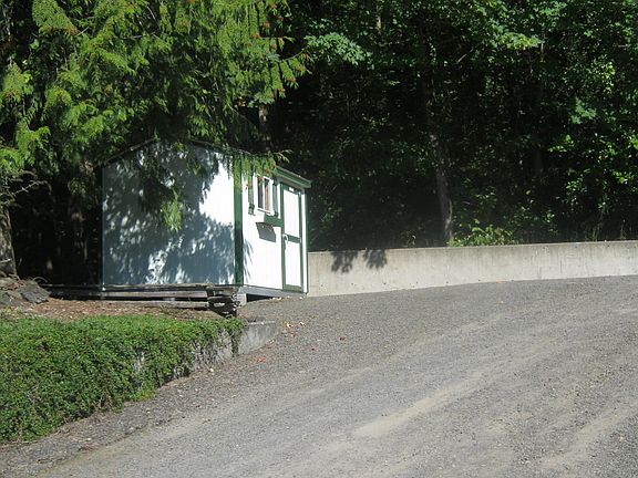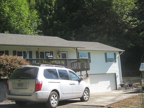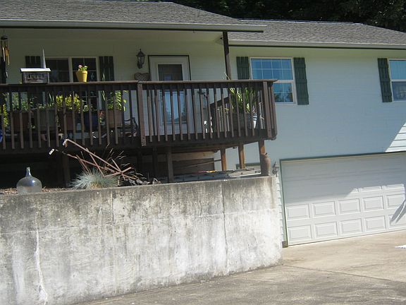 Solid 1 level home with basement (garage) on lower level. 3 Bdrm, 2 full baths on main level with nice kitchen with island. Laundry room is on lower level before entrance to garage. Decking around front & entrance side of home. RV parking & tool shed.This is a flag lot.