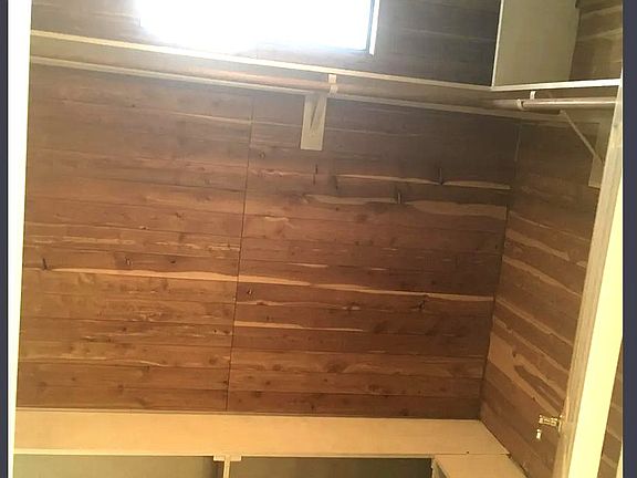 It has a porch and a balcony. There is a massive fireplace. The entire home is accented with stained wood baseboards, a wood ceiling and sills. It has a 2-car garage with cabinets and attic storage. The kitchen has a microwave, oven, range, and dishwasher. It is air conditioned. It opens into a breakfast bar. There are washer and dryer hookups in the laundry room.