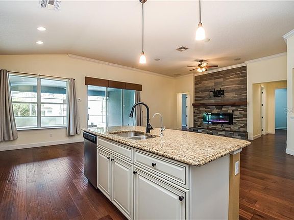 - Interior Features: Ceiling Fans(s), Eating Space In Kitchen, Split Bedroom, Stone Counters, Walk-In Closet(s), Crown Molding, Solid Wood Cabinets, Kitchen/Family Room Combo, Built in Features