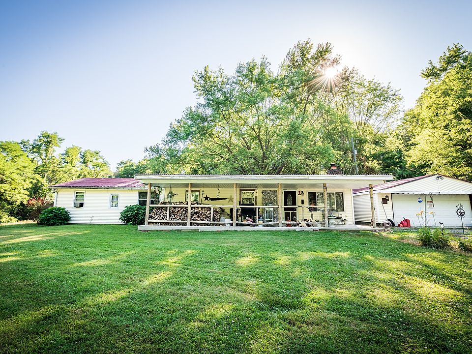 Nestled in the heart of Brown County, this property is a nature lover's paradise with proximity to Yellowwood State Forest. You are bound to see deer, birds, and other wildlife right from your covered front porch. This property offers 6.2 acres of wooded privacy with large mature trees right in your backyard with plenty of space for gardening, play, and relaxation. This home has lots of potential. It has 3 bedrooms and 1.5 baths with an open floor plan to create a seamless flow between the living, dining, and kitchen areas. It also has an extra room that can be used as an office, as well as a gravel driveway and two-car garage. The house is located in a peaceful neighborhood and on a paved road.