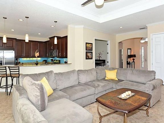 BETTER THAN NEW, priced at an incredible value! Experience the maintenance-free lifestyle you have been dreaming of in the sought-after gated community of Riva Trace. The Grand St. Kitts floorplan consists of three-bedrooms, two-bathrooms, & a spacious den encased in luxurious details & surrounded by immaculate landscaping. The interior of this home was designed to impress with upgrades such as crown molding, grand/tray ceilings, modern light fixtures, & elegant finishes in every room. A gourmet kitchen, resting off of the great room, features rich cabinetry with neutral, earth-tone granite countertops, a raised breakfast bar, & plenty of space for a chef of any level! Relaxation will be easy to come by in the master suite which features a private entrance to the lanai, transom windows, a large walk-in closet, & an en-suite, spa-like master bath with a tiled walk-in shower, dual vanities, & a linen closet. Entertaining is made easy with three separate dining areas indoors & out, plus three entrances into the screened lanai & pool area. Whether entertaining a crowd or simply looking to retreat to your own fenced backyard, the low-maintenance saltwater pool is the perfect place! A built-in wet bar with a mini-fridge, topped with granite, is the ideal spot to keep snacks & drinks handy, too. Riva Trace community rests on the Braden River & provides residence with direct access to launch kayaks/canoes, with NO CDD FEES! This community is conveniently located to I-75 & premier shopping & dining. Call today!
