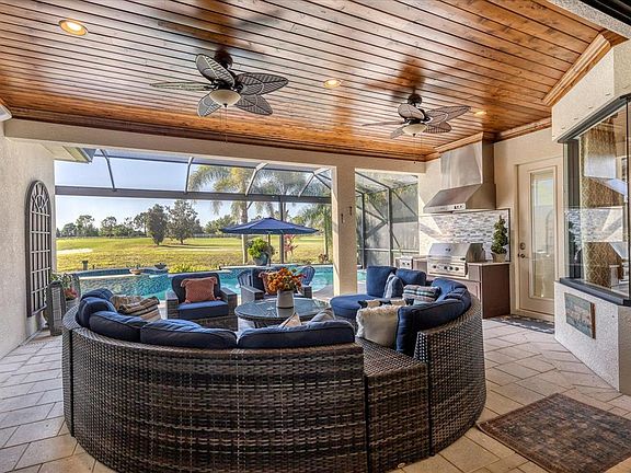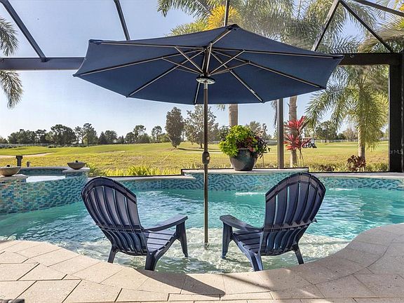 The words stunning and immaculate emulate this home located in the highly sought after Country Club East neighborhood. The pristine golf course view you see through the brand new panoramic screens will impress you as you enter the home. The spacious master bedroom suite which offers an abundance of natural light, features his and her walk-in closets with custom built-ins, automated window blinds for added privacy and an oversized bathroom. Split floorplan offers privacy for your guests as both guest rooms have walk-in closets and share a guest bath. Chef's dream kitchen with all upgraded GE Profile stainless steel appliances, designer cabinetry, custom shelving/ pullouts, an oversized center island for all your kitchen needs and extra storage underneath. An incomparable spa-like outdoor retreat awaits on the lanai with summer kitchen, television for entertainment and custom pool/spa overlooking the 10th hole of the golf course. Laundry room has been designed for added storage with a huge closet and plenty of cabinetry. Home has added water softener throughout. You can walk down the street to The Lodge enjoy lunch or dinner and look out at The Royal Lakes Golf Course. Country Club East is located in Lakewood Ranch the #1 Master Planned Community in the Nation which has it's own hospital, restaurants and is in close proximity to I75, Sarasota's beautiful beaches, UTC Mall, and much more.