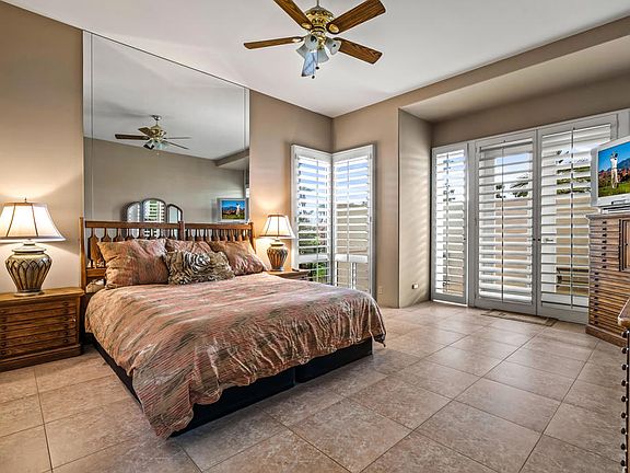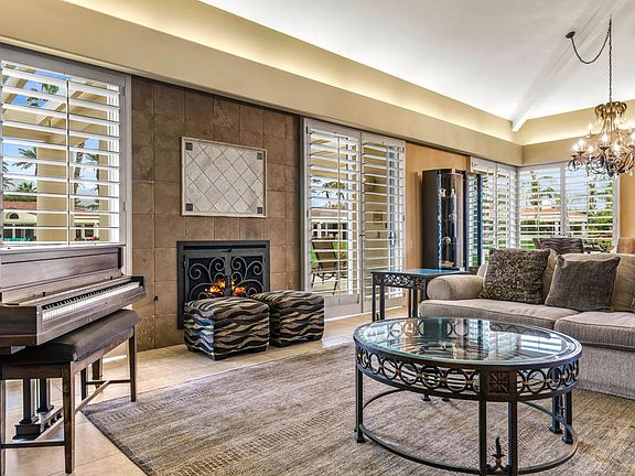 Premier Indian Wells location with south mountain and 18th fairway views. This charming furnished home offers an open floor plan with desert living at it's best. Highlights include tile flooring, plantation shutters, great room with fireplace, formal dining room, upgraded kitchen with breakfast nook and island, stainless steel appliances and a private side patio with pebble-tec spa. Two car plus a golf cart garage. 3rd bedroom is being used as an office and has a sofa-bed sleeper).